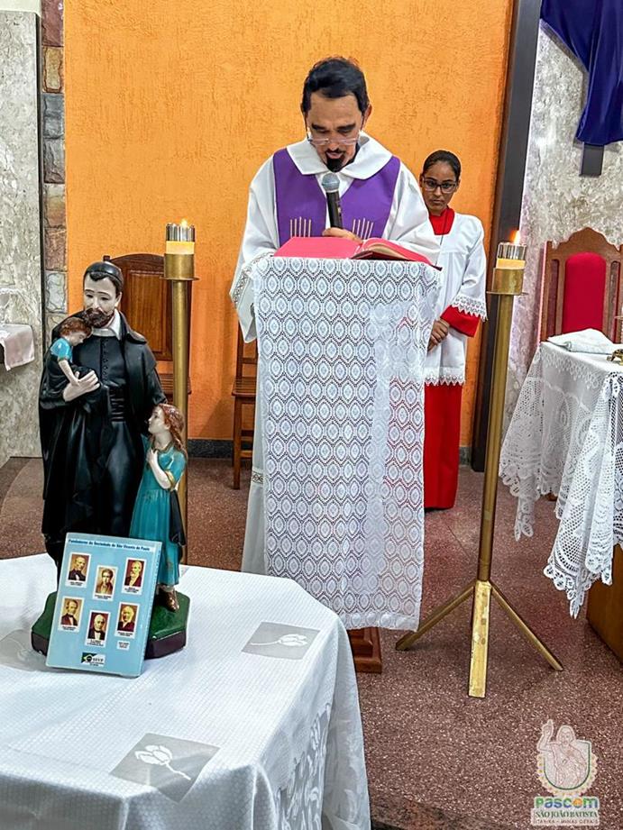 A celebração aconteceu na igreja da comunidade Santa Ruth, e foi conduzida pelo Frei Otaviano. Durante a liturgia, o Frei Otaviano refletiu sobre o legado de São Vicente de Paulo e a missão da Sociedade que leva seu nome: servir aos mais pobres e necessitados, promovendo a justiça e a dignidade humana.